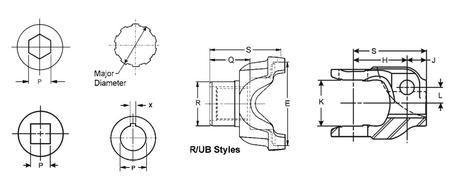 6.5-4-2131 Driveshaft End Yoke Splined Bore 1810 Series 10 Spline 5.875" C/L-End