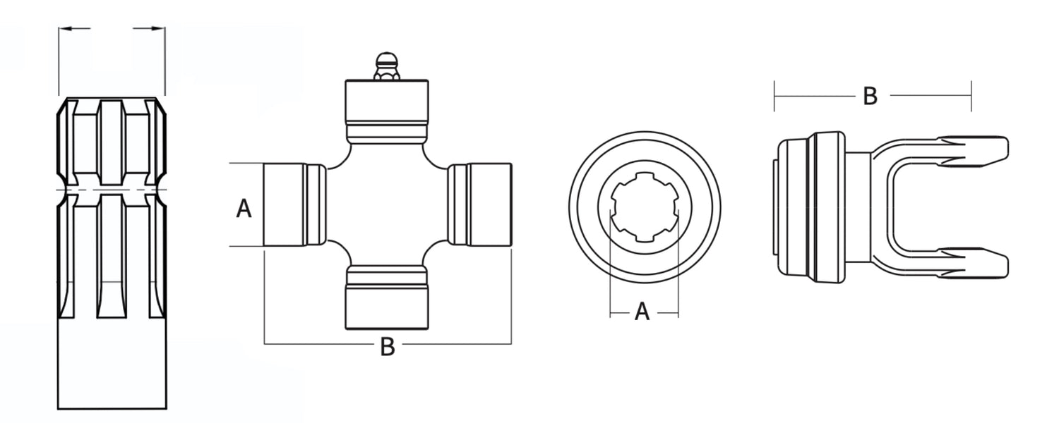 PTO Agriculture Male - Female Adaptor 6 splines 1 3/8" / 8 splines 1 1/2"