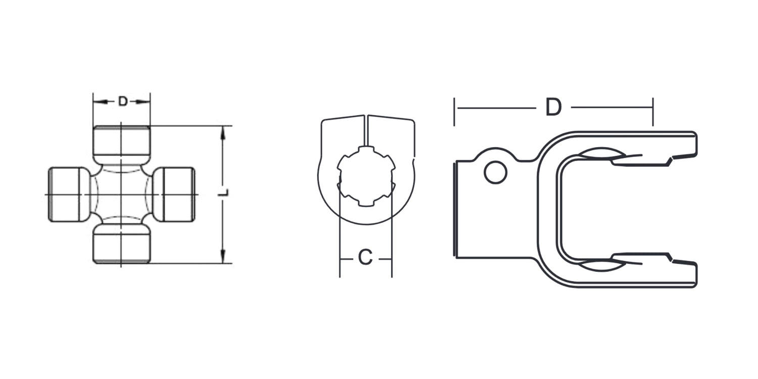 Quick Disconnect Yoke 34.9mm x 106.5mm 6 splines - 44.4mm (1 3/4") H-128mm